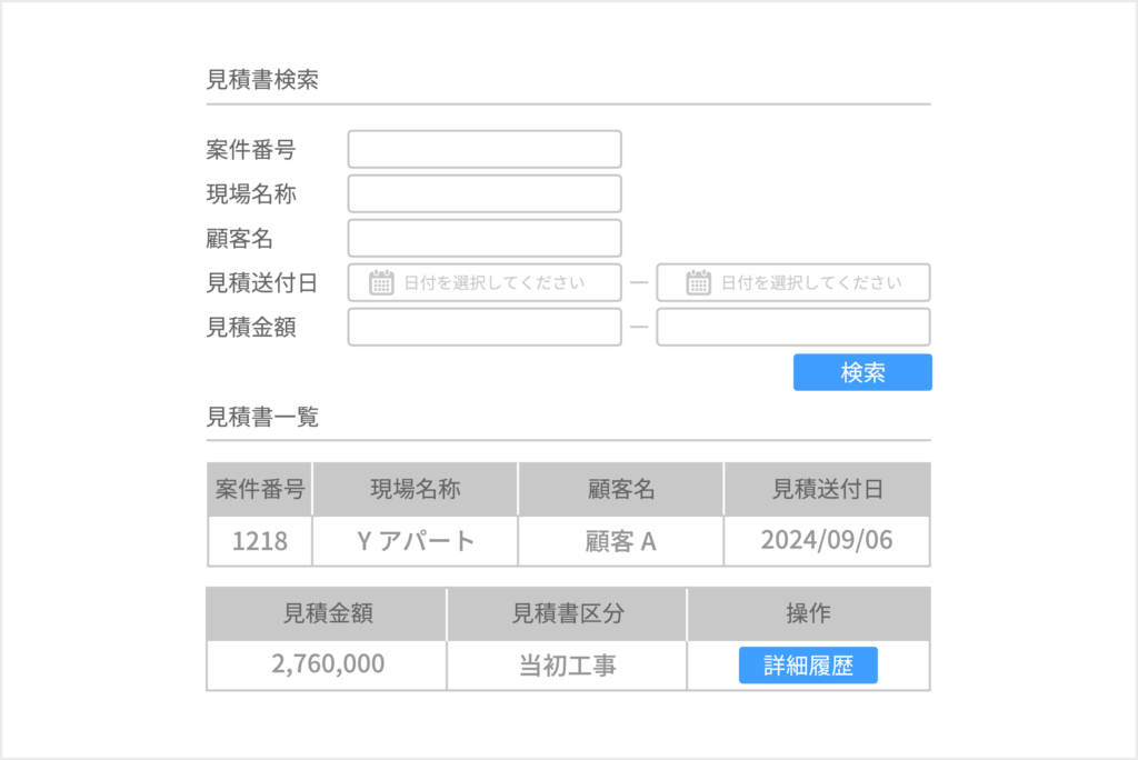 案件ごとに見積内容を整理し、後から原価や利益と照らし合わせられる形で管理します。その場しのぎの見積で終わらせず、判断につながる情報として残します。